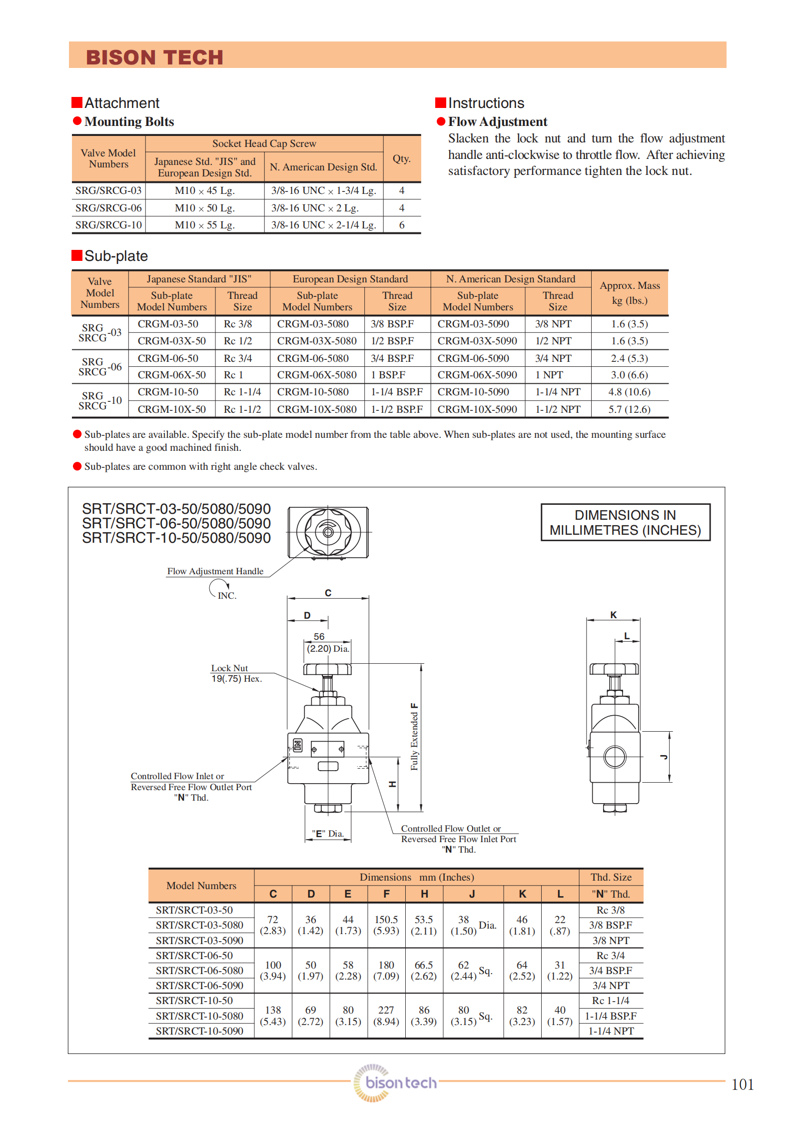 YUKEN Series Restrictors SRG-06-50. This valve is used to regulate an actuator speed in a circuit where line pressure is almost steady and small fluctuation of oil flow due to pressure changes is permitted. Integrated check valve allows reversed free flow from outlet to inlet port. Pressure balanced construction provides less effort in adjustment at high pressure.